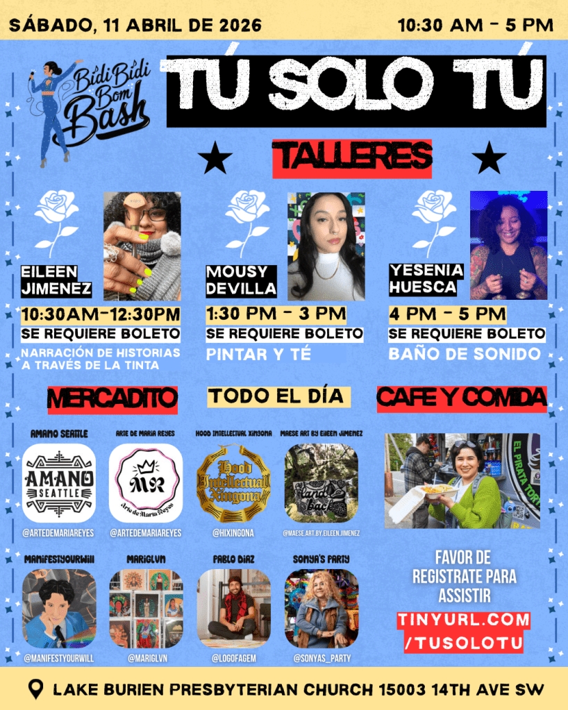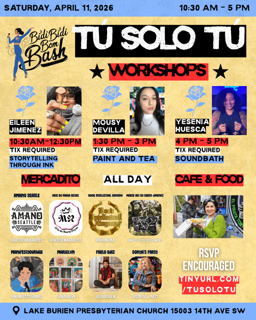 Este año, nos centraremos en nuestro bienestar y creatividad. En una sala, ofreceremos una serie de talleres (se requiere boletos). En la otra, tendremos un salón donde podrán comprar comida y arte de puestos locales (por favor, confirmen su asistencia).